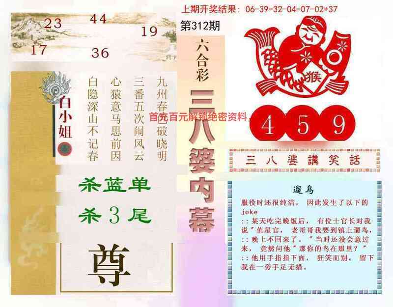 | 312期:⑨码 | 17.25.20.18.07.34.47.03.38 | 开發00准 |